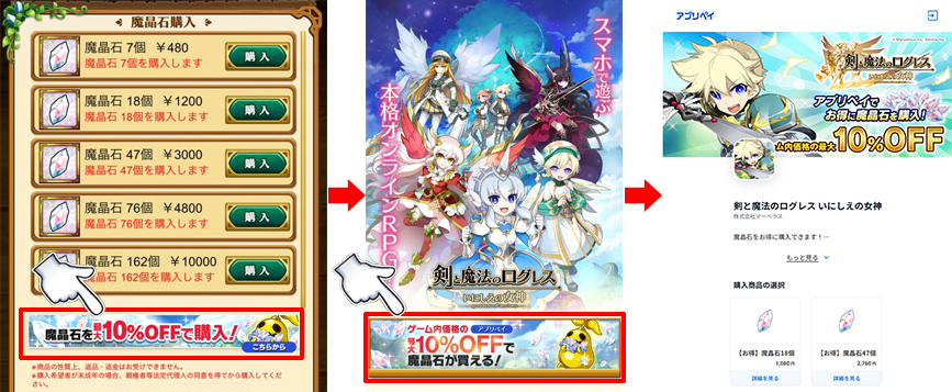 アプリペイを利用すると、いつでもゲーム内価格より最大10%お得に魔晶石をご購入いただけます。