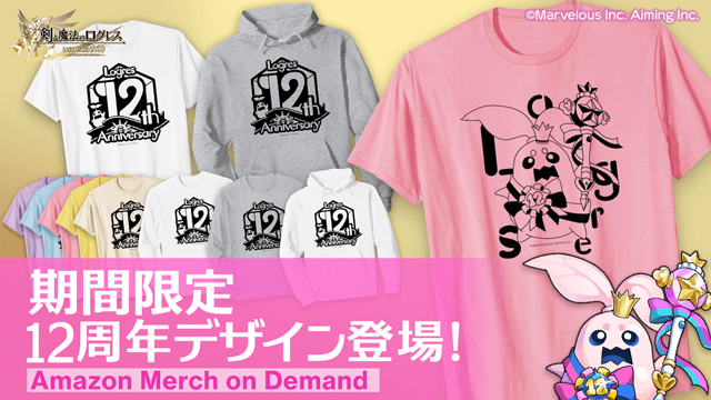 Amazonのサービス「Merch on Demand(マーチオンデマンド)」にて販売中のログレスのアパレルグッズに、12周年記念の期間限定デザインが登場!