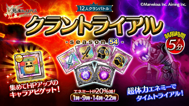 クランレベルに応じてクエストが解放される「クラントライアル-season54-」を開催します。