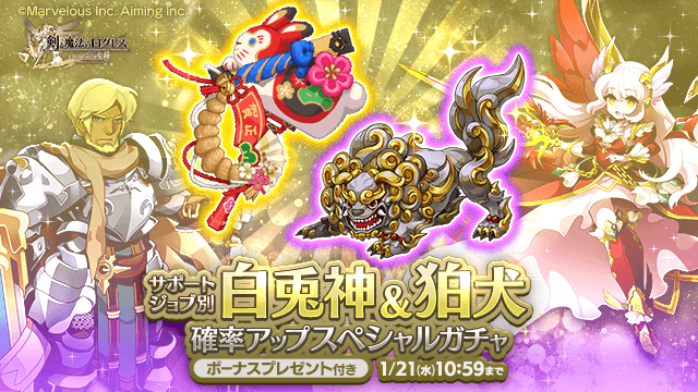 期間中、ガチャの「オススメ」タブにて「サポートジョブ別 白兎神&狛犬確率アップスペシャルガチャ」を販売します。