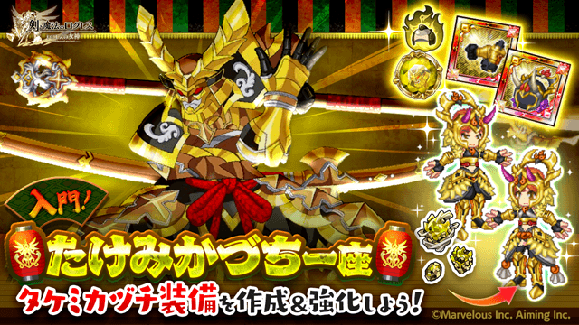 イベント限定素材を集め、加工場で「タケミカヅチの兜-雷神-」を含むタケミカヅチ装備を製作しよう!