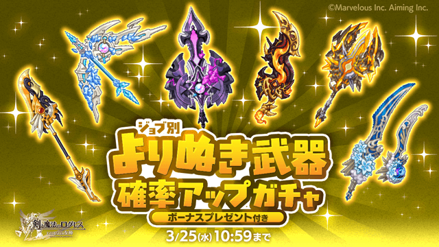 期間中、ガチャの「オススメ」タブにて「ジョブ別 よりぬき武器確率アップガチャ」を販売します。