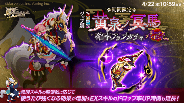 期間中、ガチャの「オススメ」タブにて「ジョブ別 黄泉ノ冥馬確率アップガチャ」を販売します。